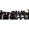 BC Racing's HM Coilover system offers the same great benefits of the RM Series with the addition of 2-way damping adjustment. Each HM Coilover system offers inverted mono-tube dampers with independently adjustable compression and rebound. The inverted damper design moves vital damper fluid away from detrimental heat sources to avoid overheating which can cause damper fade under extreme track use. The inverted damper also allows for decreased unsprung weight by moving the majority of the coilover mass up to the chassis where weight can more easily be shaved. With the combination of inverted mono-tube dampers and external reservoirs the HM Series is suited for the