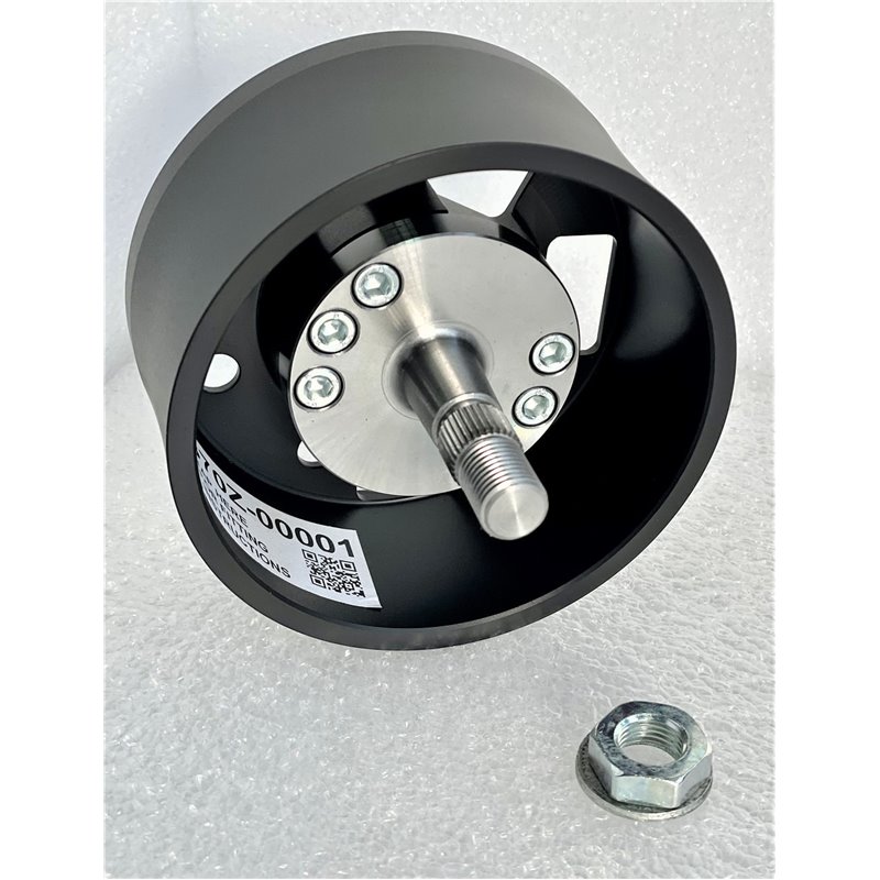 The spacer, made of C45 steel, fits and fixes onto the original spline while the steering wheel fits and fixes onto the spline of the spacer. Both splines have a fixed location and it is impossible to lose the center of the steering wheel.