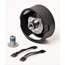 Il distanziale, realizzato in acciaio C45, si innesta e fissa sul millerighe originale mentre il volante si innesta e fissa sul millerighe del distanziale. Entrambi i millerighe hanno una sede obbligata ed è impossibile perdere il centro del volante.