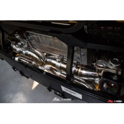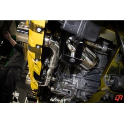 Il downpipe scatalizzato ad altissimo flusso va a sostituire il catalizzatore originale (molto restrittivo). Questo upgrade consente ai gas di scarico di uscire più liberamente; permette di aumentare la potenza e produce un sound ancora più alto. Su questo downpipe è installato un ingannatore per sonda lambda, in grado di minimizzare le possibilità che la spia motore si accenda.